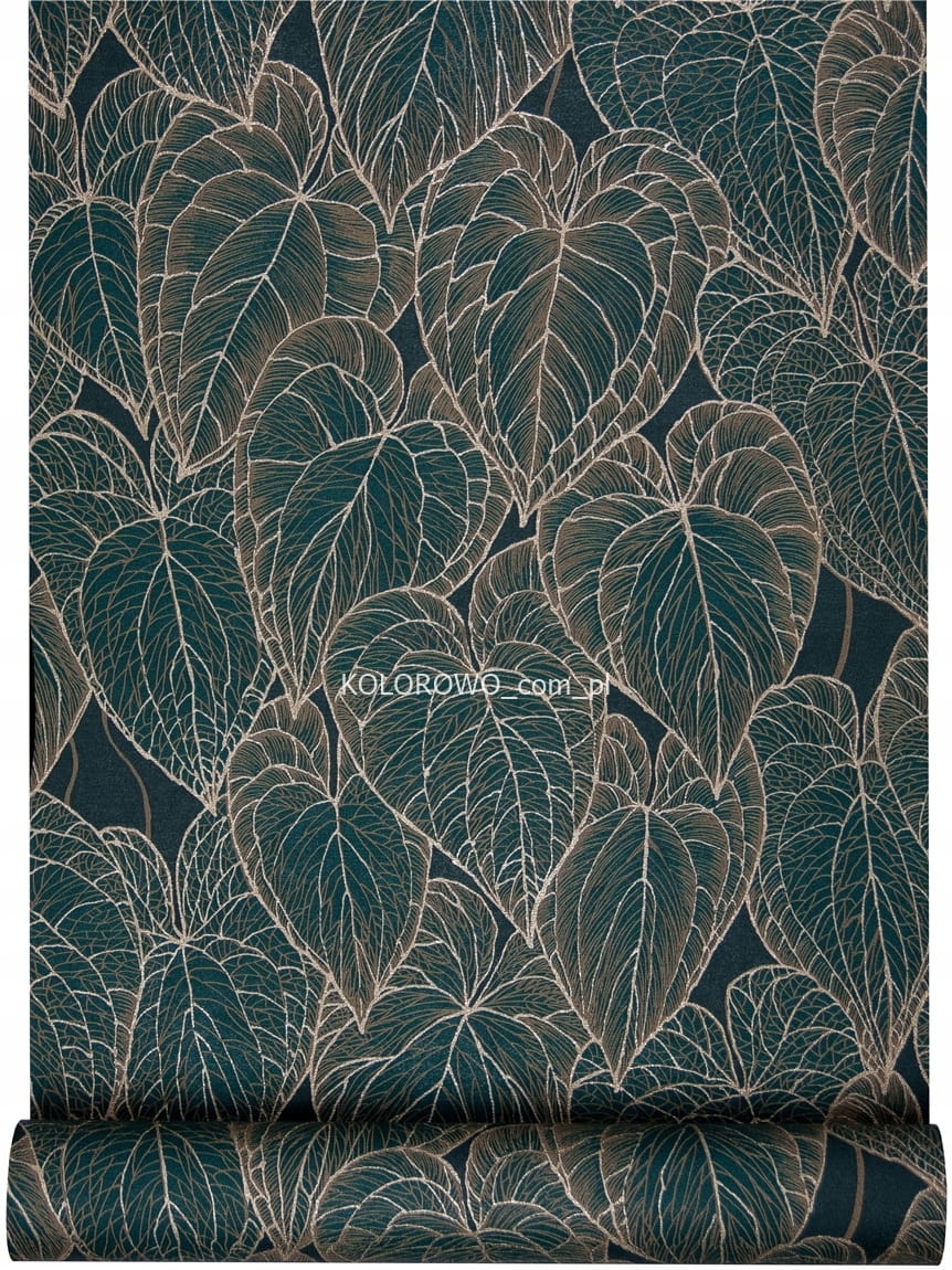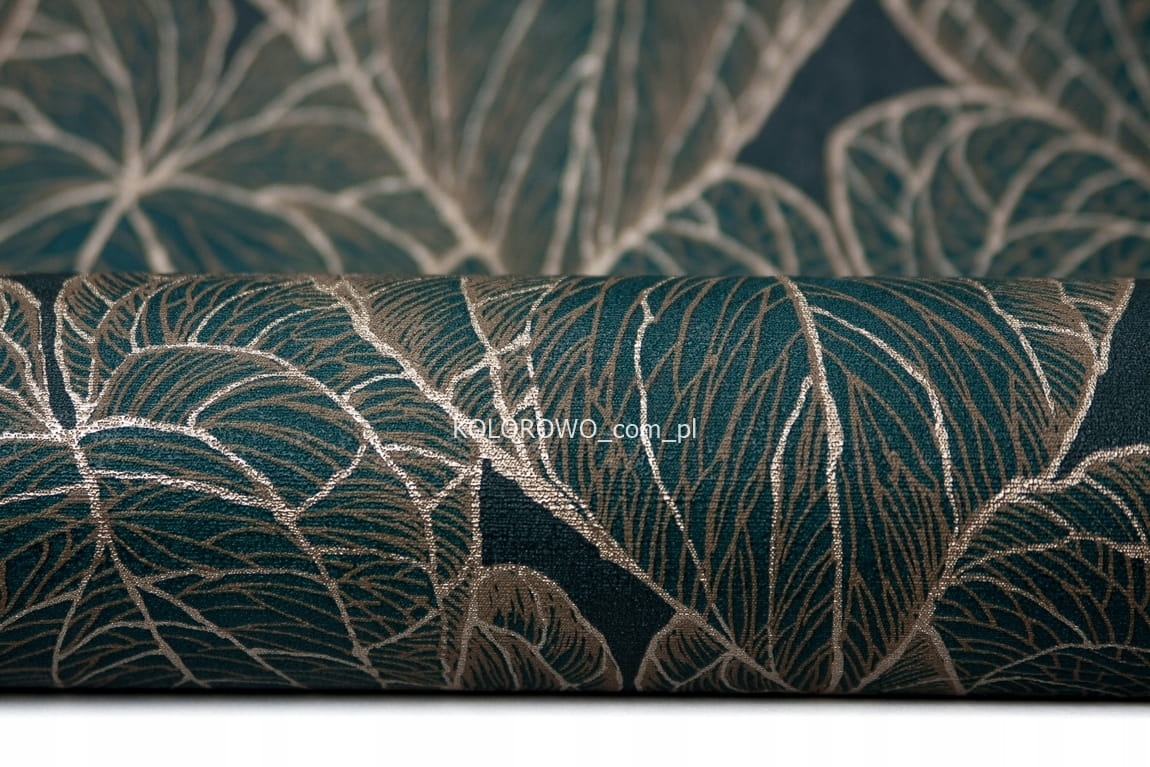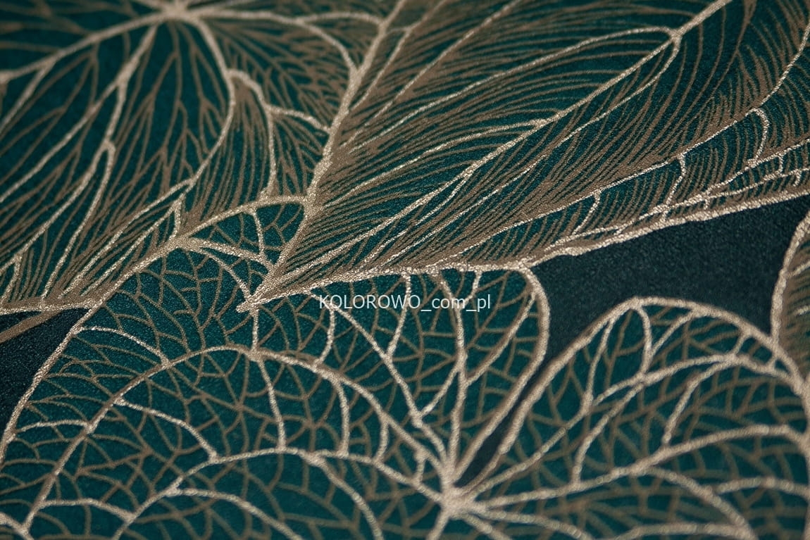- tapeta matowa, kontury liści połyskują metalicznie w bocznym oświetleniu