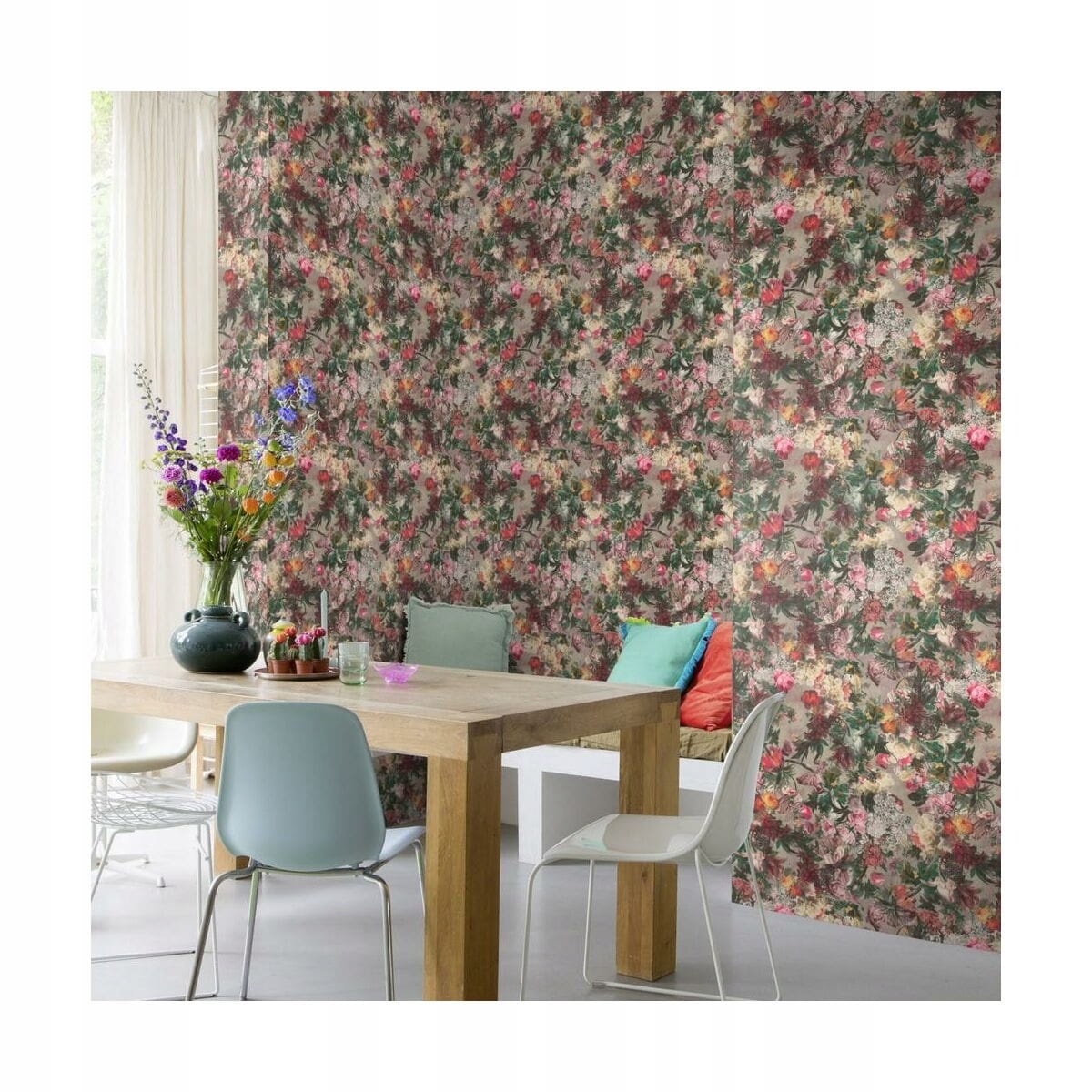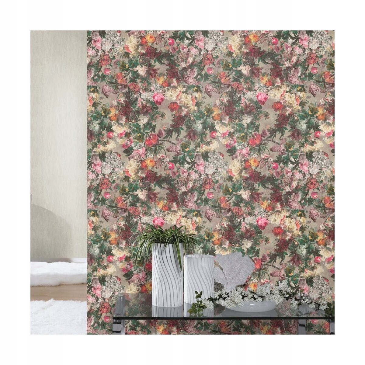 - Kompozycja przepięknych różnorodnych kwiatów, które zostały przedstawione na tapecie wyjątkowo precyzyjnie i szczegółowo, jakby naprawdę były ręcznie malowane farbami olejnymi. Tapeta nawiązująca do malowanej szczególnie w okresie baroku martwej natury na pewno jest propozycją dla nietuzinkowego wystroju wielu wnętrz