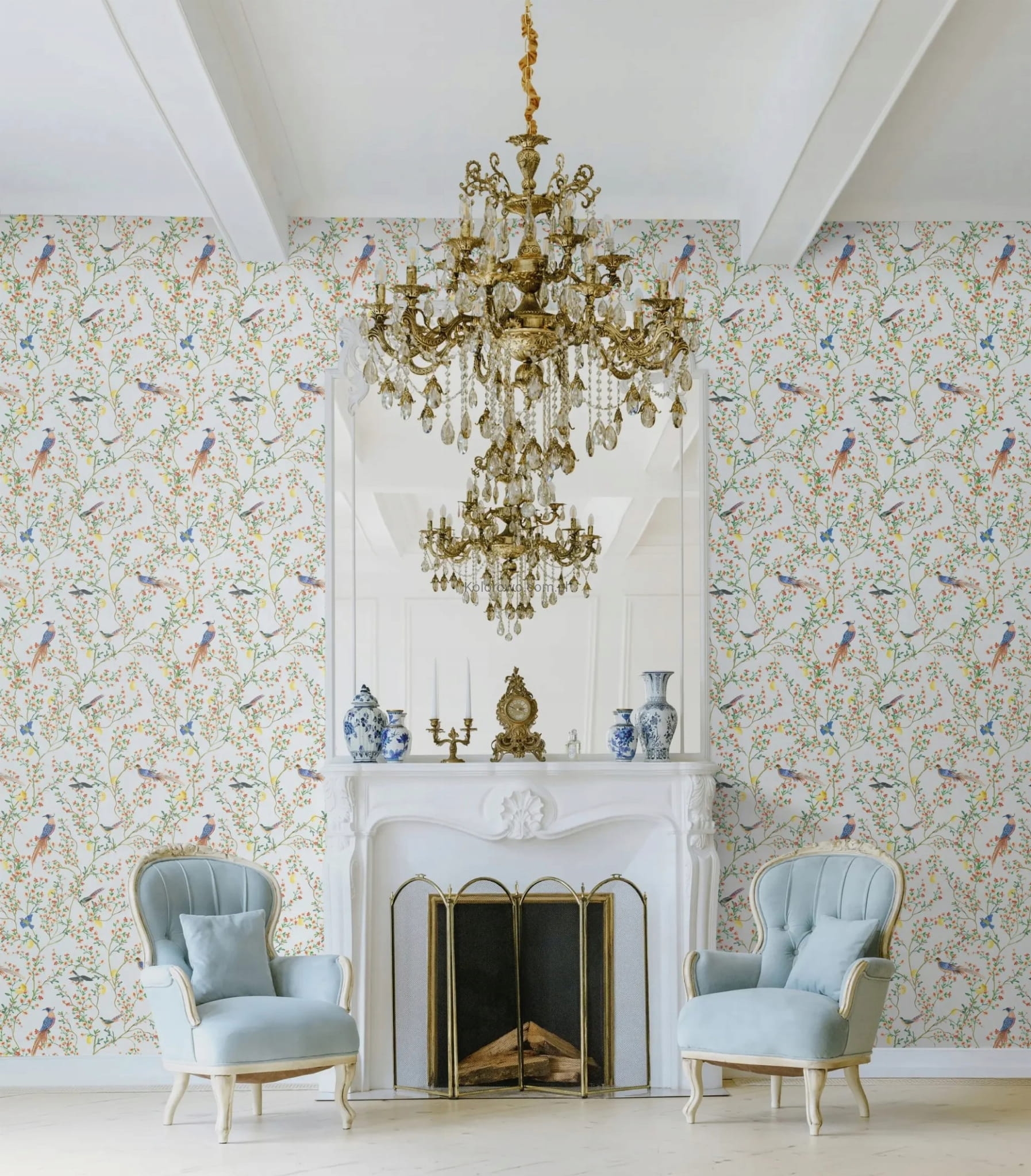 Tapeta 35623 luksusowa KLASYCZNA Rajskie ptaki kwiaty winylowa