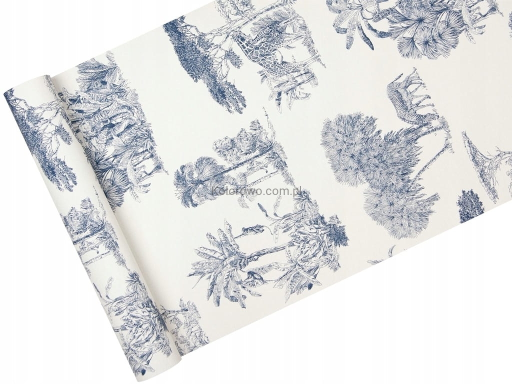 Tapeta zmywalna MOTYWY z AFRYKI biel i granat 555011